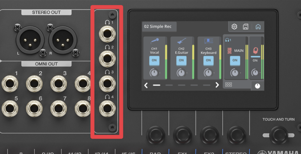 ヘッドホン端子が4つ|それぞれ別ミックスが可能